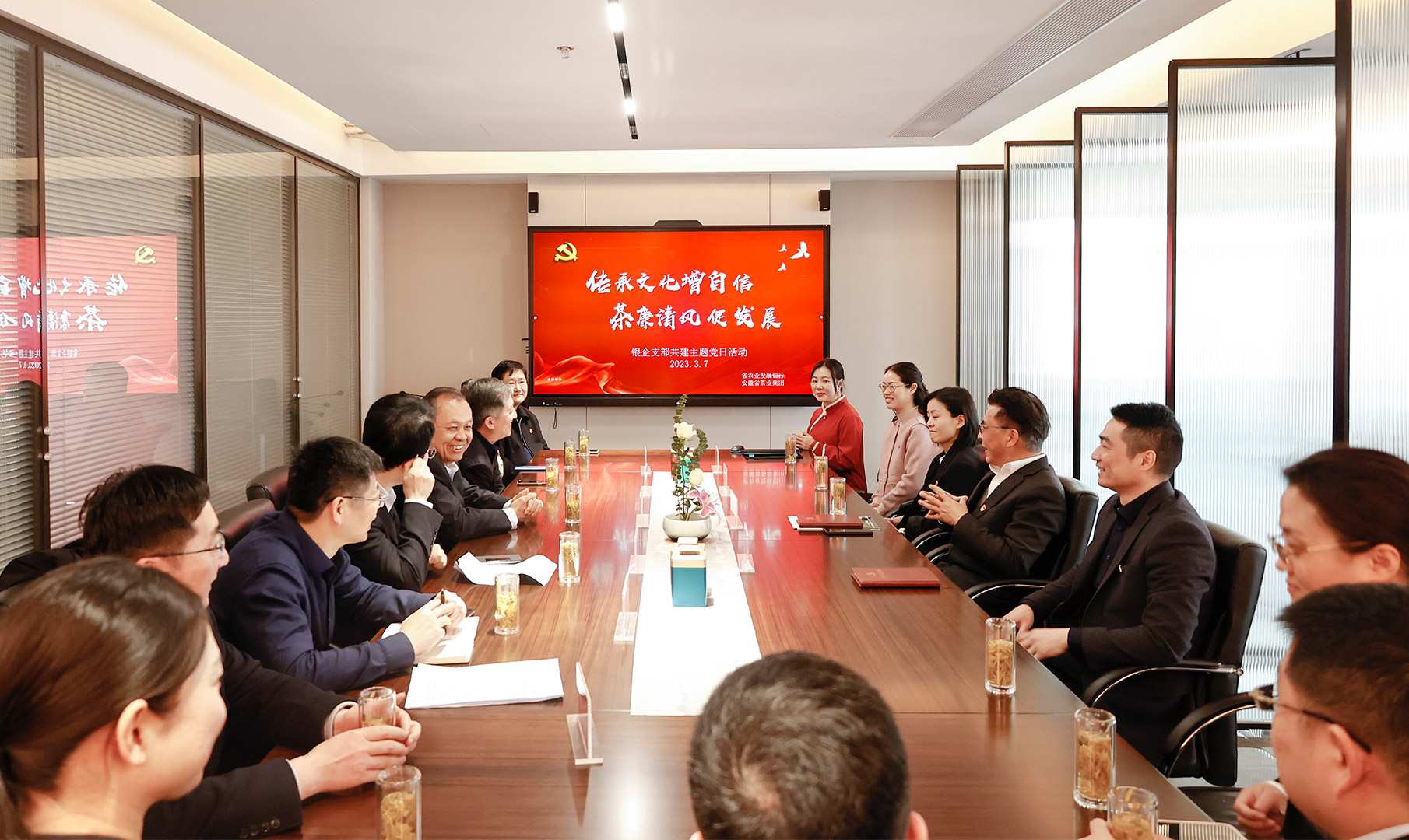 为深入学习宣传贯彻党的二十大精神和习近平总书记“把茶产业做大做强”的指示,弘扬中国传统文化,增强文化自信,促进产业发展,3月7日上午,省茶业集团省茶协联合党支部与中国农业发展银行安徽省分行党群工作处、风险管理处、调查评估中心、产业客户处党支部在省茶业集团开展“传承文化增自信,茶廉清风促发展”支部共建主题党日活动。